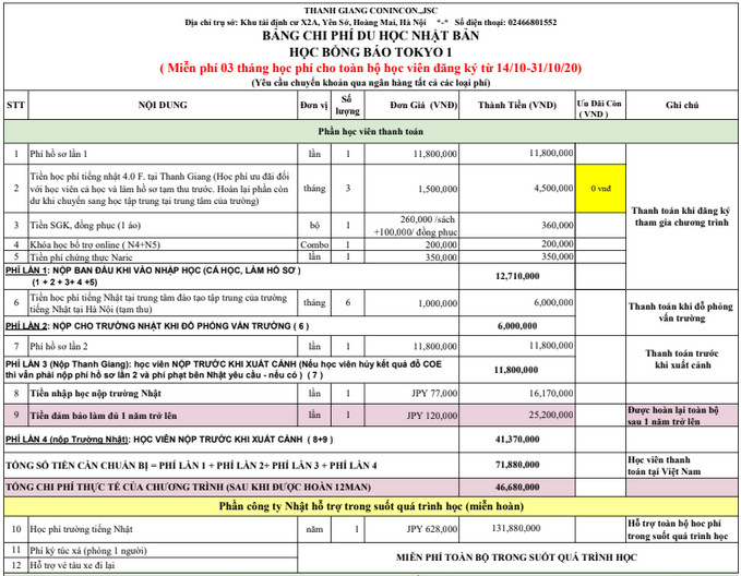 Nhạn Tiền Học Bổng Tokyo Qua Ngân Hàng