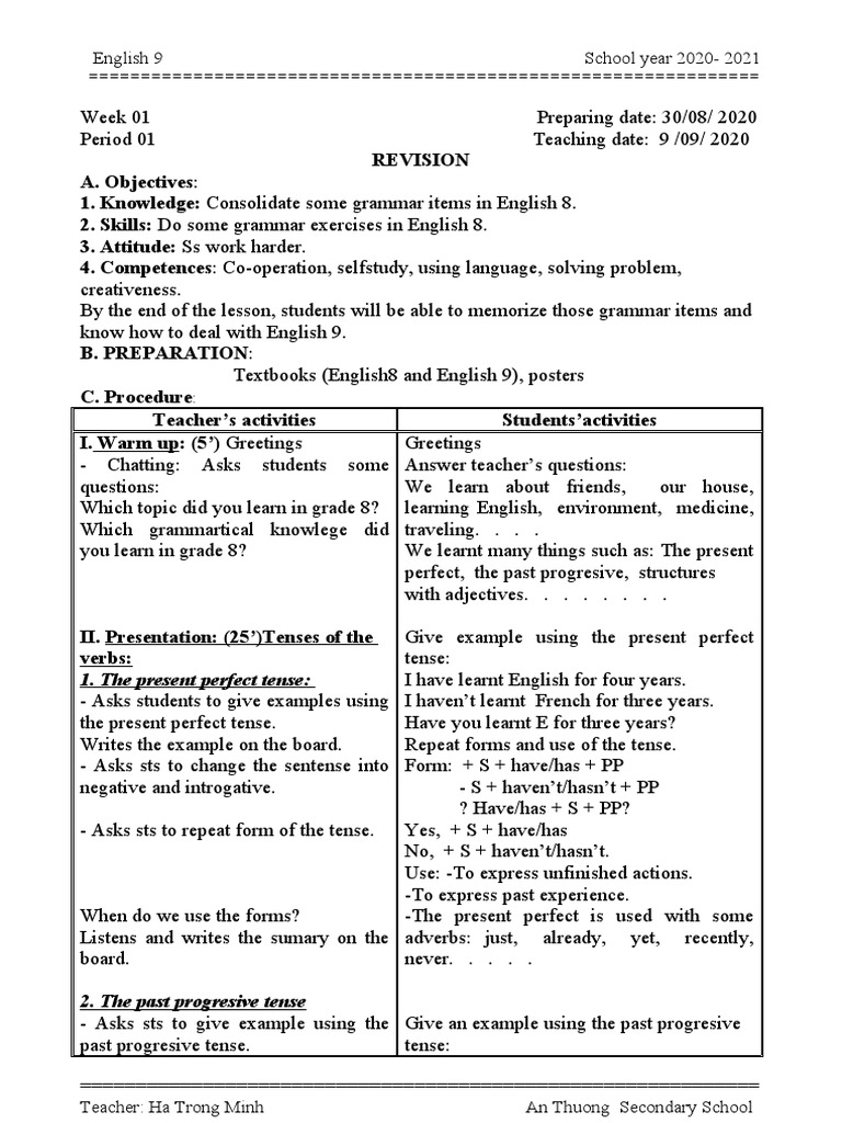 Giao An Anh 9 Năm Học 2019 2020 Grammatical Tense Linguistics